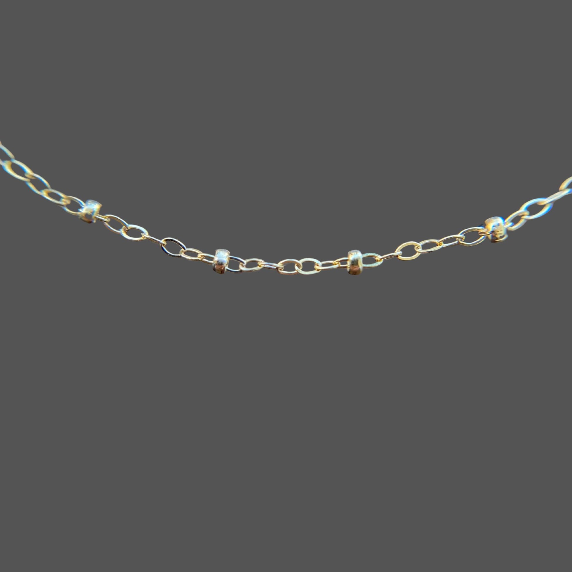Delicate yet eye-catching, the Celeste Choker is a gold-filled chain designed for effortless elegance. Tiny gold beads spaced along a dainty chain add subtle texture and shine. Wear it alone for a refined, minimal look or layer it with your favorite necklaces for a soft, golden glow.
